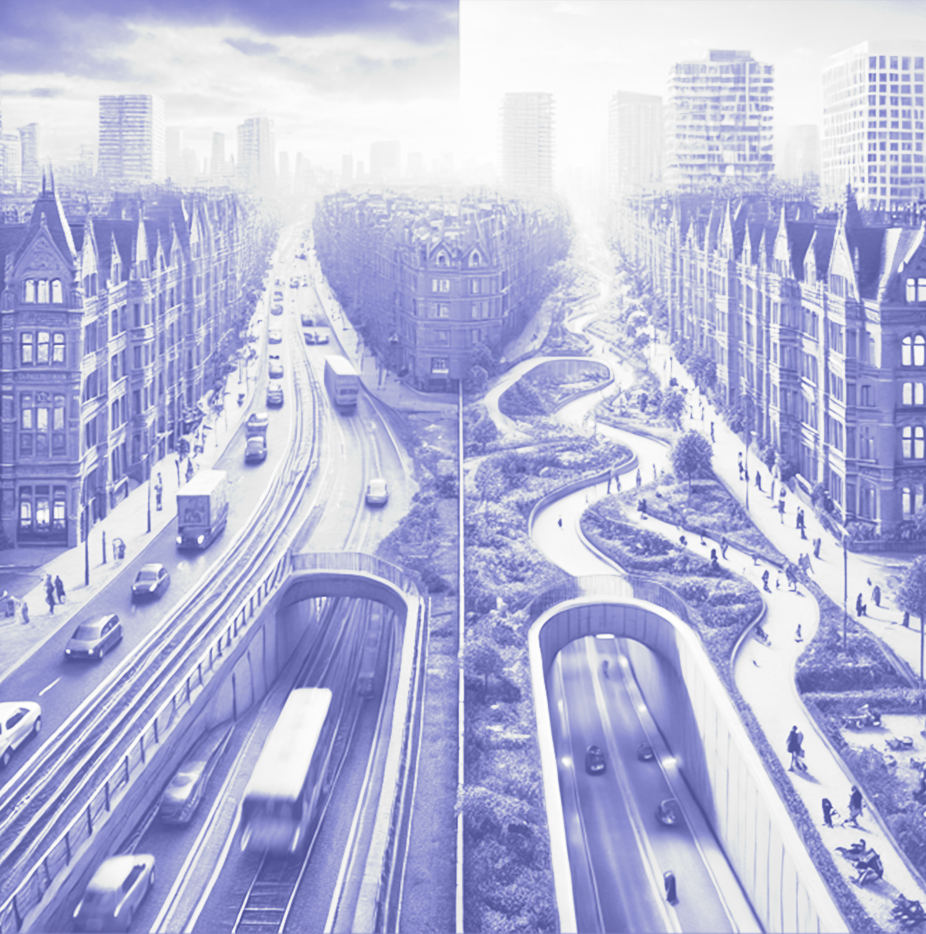 It simulates “what-if” scenarios using Earth Observation and mobility data to test sustainable mobility policies and urban transformations.